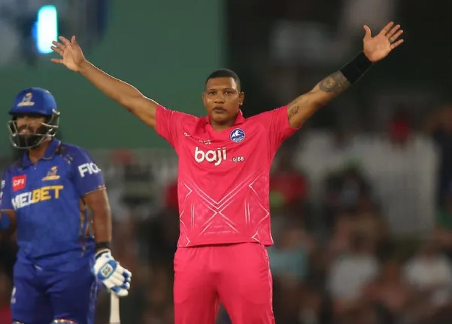 No one is out to confiscate cricket balls from Baartman anymore, but he stills bowls as if there is an ‘auntie’ waiting to do so in the stands. There is no tournament where he has shown this ability beyond the SA20.